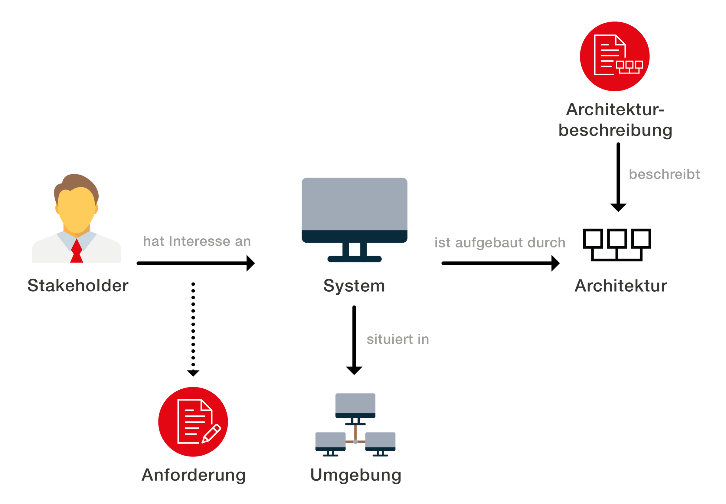 In diesem Artikel werden die folgenden in Abbildung 1 gezeigten Begriffe in Anlehnung an ISO 42010 verwendet: