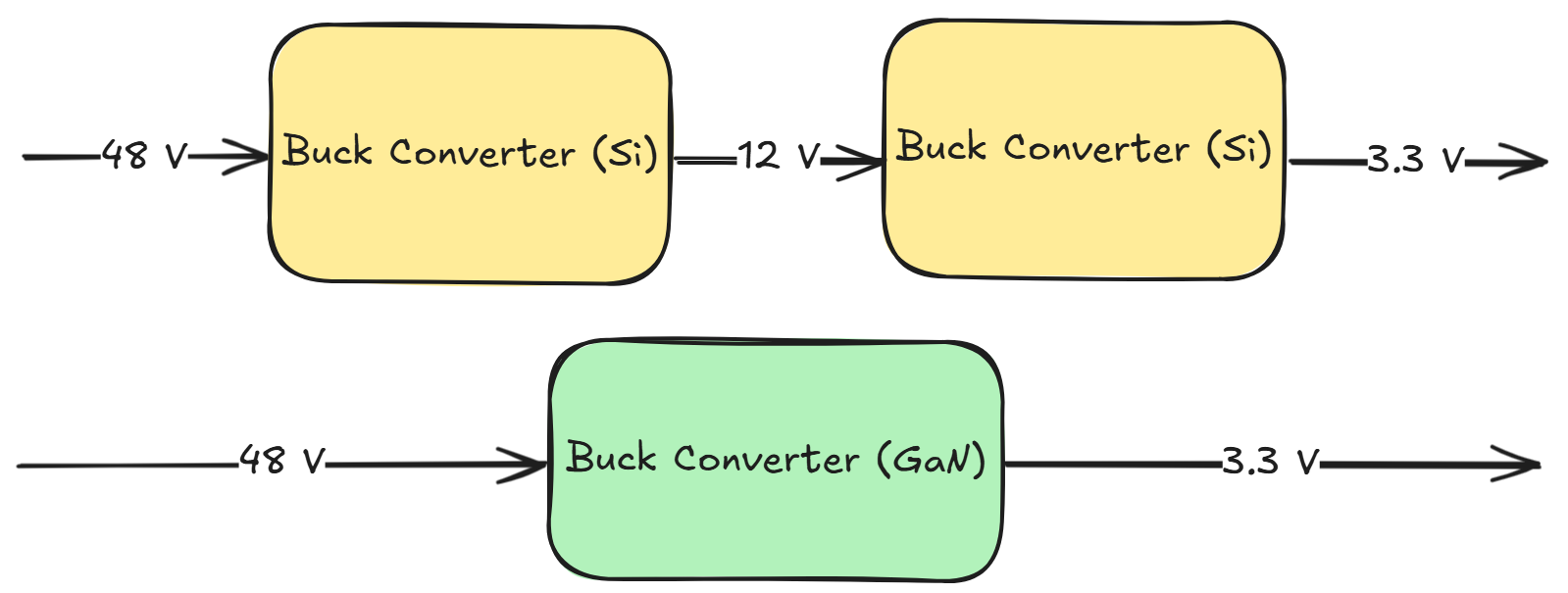 Dies ermöglicht beispielsweise, zwei hintereinander geschaltete Buck-Converter durch eine einzelne Stufe zu ersetzen.
