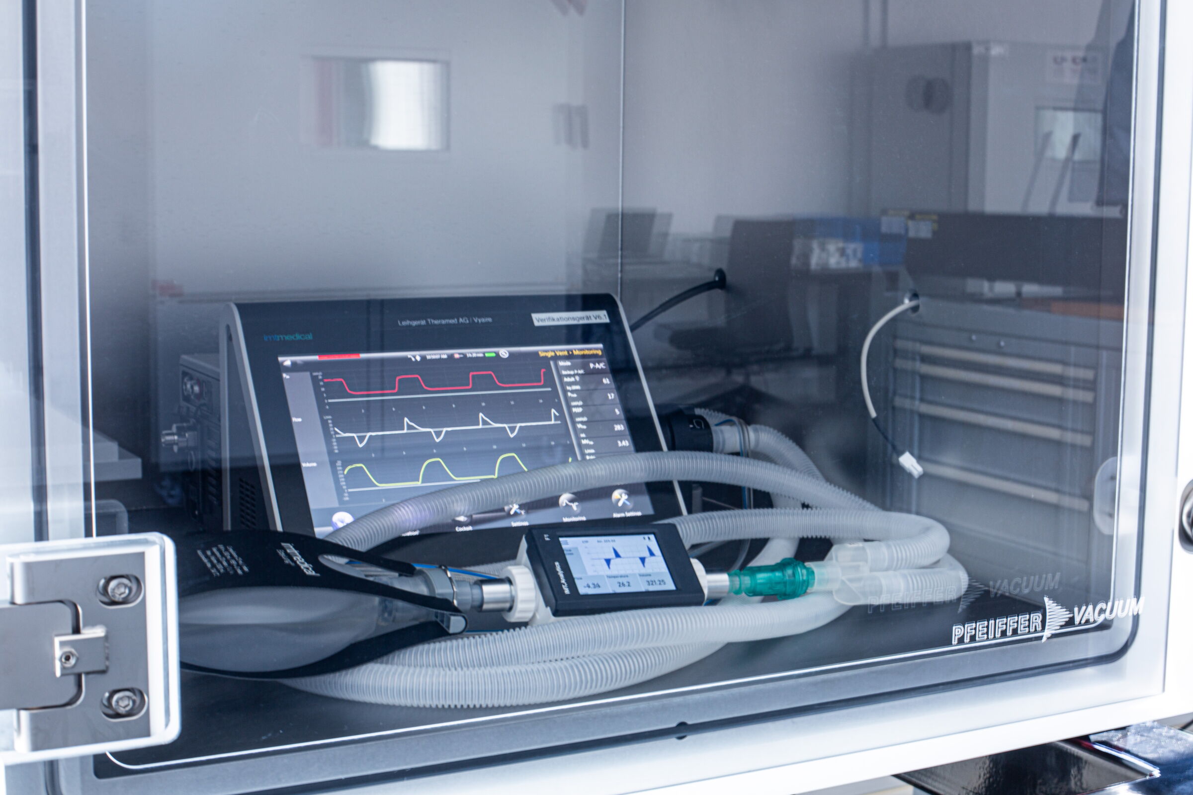 Insbesondere Beatmungsgeräte sind in verschiedenen Einsatzgebieten (z.B. Notfallbeatmungsgeräte in Hubschraubern oder Beatmungsgeräte in Krankenhäusern bzw. in der häuslichen Pflege in allen geographischen Regionen der Welt, ob in hochgelegenen kühlen Bergregionen oder heisseren meeresnahen tropischen Regionen) unterschiedlichen klimatischen Anforderungen ausgesetzt. Diese unterschiedlichen und zum Teil extremen Bedingungen müssen simuliert und getestet werden, um das einwandfreie Funktionieren eines kritischen medizinischen Gerätes zu gewährleisten.