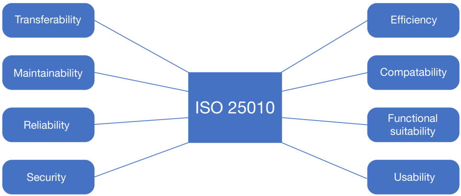 As described above, the selected architecture style is responsible for the quality of the software. According to ISO 25010, the software quality characteristics are defined as follows.