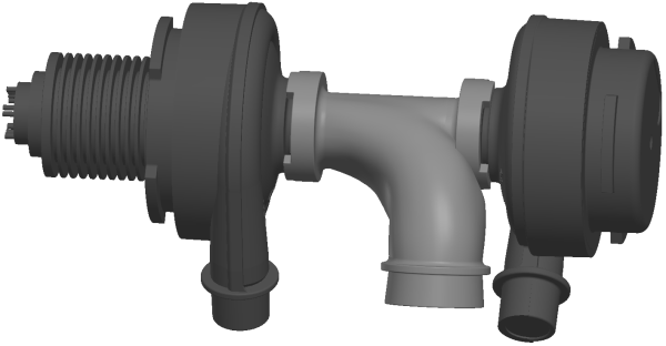 Development of a blower coupler: IMT optimized a blower coupler for a lung simulator, with a focus on minimal pressure loss, material consumption and flow-optimized geometries.