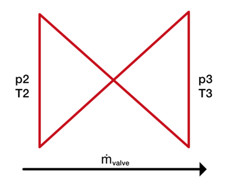 Given an input and an output pressure, a valve returns a flow (see Figure 2). A simple valve model without a modeled valve actuator has no states.