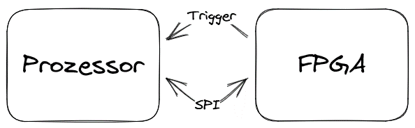 The trigger signal triggers an interrupt which starts the DMA and copies all data from the FPGA into the memory of the processor. Additionally a ring buffer was implemented in the FPGA. This makes it possible to buffer data and prevent data loss when the processor is busy for a certain time.