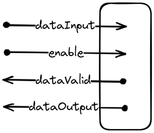 As soon as the interface sees an edge at the "enable" input, the component starts data acquisition independently. As soon as this is completed, the component signals with an edge on "dataValid" that valid data are available. Each sensor component has a sampling time Ts. This is the time between the edge on "enable" to the edge on "dataValid". Now any sensor can be integrated. It is only to be noted that the maximum sampling time of each component (\( T_{s,max} \)) is smaller than the time between the pulses (\( T_p \)).