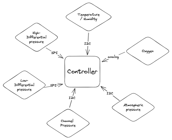 For a flow measurement device, various sensor values must be continuously recorded and evaluated. Figure 1 shows an overview of the measured values. In addition to these sensors, the system needs other sensors to determine other measurement parameters. Since each value represents a snapshot, it makes sense to sample all sensors that are used in the flow calculation at the same time. In addition, each sensor has a different interface and the sampling interval should be fixed.